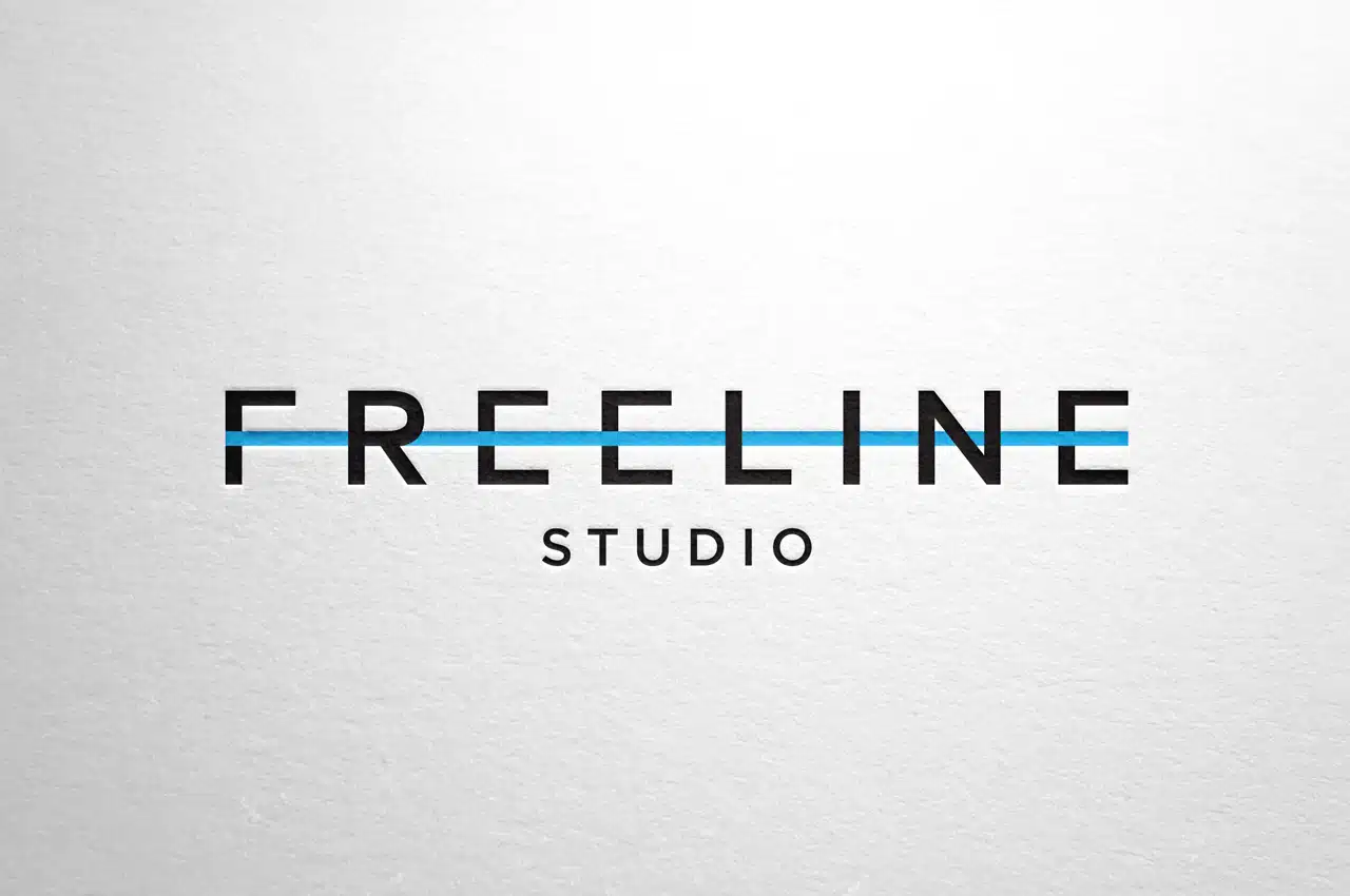 Minimalizam i tipografski stil logotipa su u osnovi dizajna vizuelnog identiteta za Freeline Stuidio. „Gotham“ font je primenjen u nazivu „Freeline“, kroz koji se slobodno proteže svetlo plava linija.
